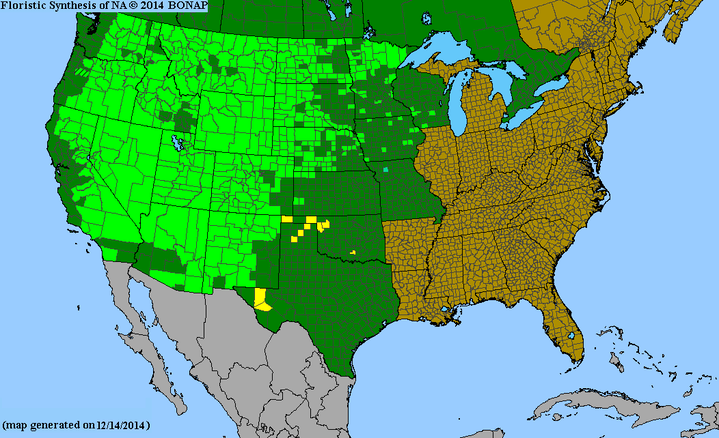 In the United States, the range of this species is limited to the west and plains. It has a range which extends through the plains and Rocky Mountains of Canada into Alaska and southward into northern Mexico. The Flora of North America notes that "Rosa woodsii is the most common and most variable rose species in central and western North America”. At least 25 different species have been proposed for the plant described as Rosa woodsii.