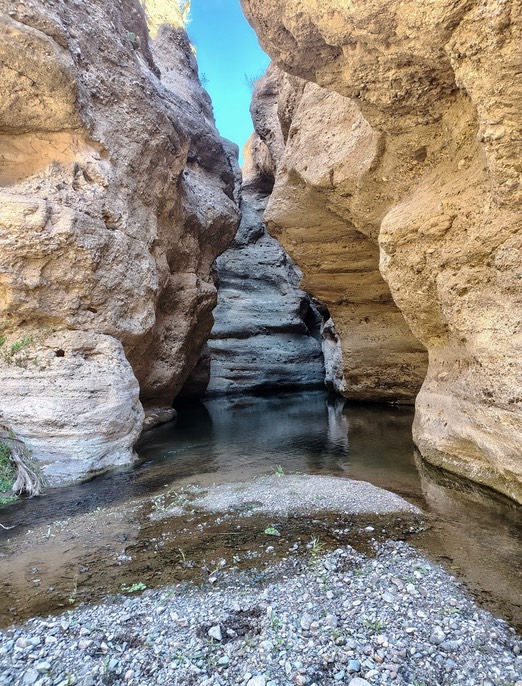 As for number 2, the 360° video of Wicks Slot - nada. When I arrived at the slot it surprised me once again. In two decades of visiting this slot I thought I had seen all of its moods and variations - it literaling is never the same. I was wrong. It was different. It was flooded. Percha Creek had rerouted into the slot on the west side and out on the east side.